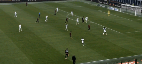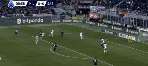 ↑33:15,边路萨勒马克尔斯和托莫里把萨索洛的防守吸引在边路,莫德里奇的前移接球就让本来负责盯防齐克的坎德处于顾此失彼的状态(索斯特维德没有及时横移)。利用魔笛的传球以及齐克这一点在肋部的接应,就打穿了萨索洛整条防线的布置,随后的事大家就都知道了。
